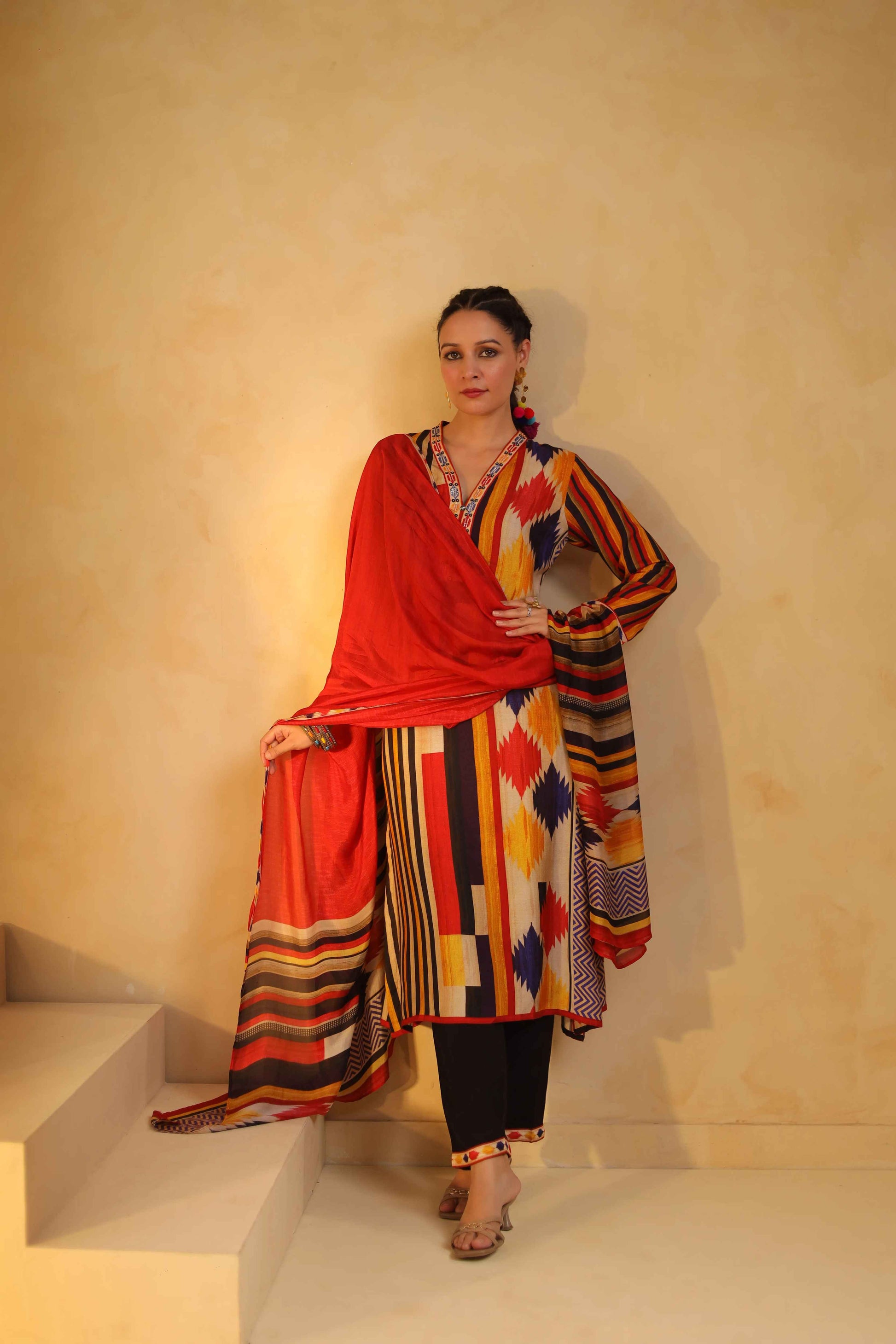 Material:– Top:- Dola Silk, Bottom:- Cotton Satin, Dupatta:- Paper Silk