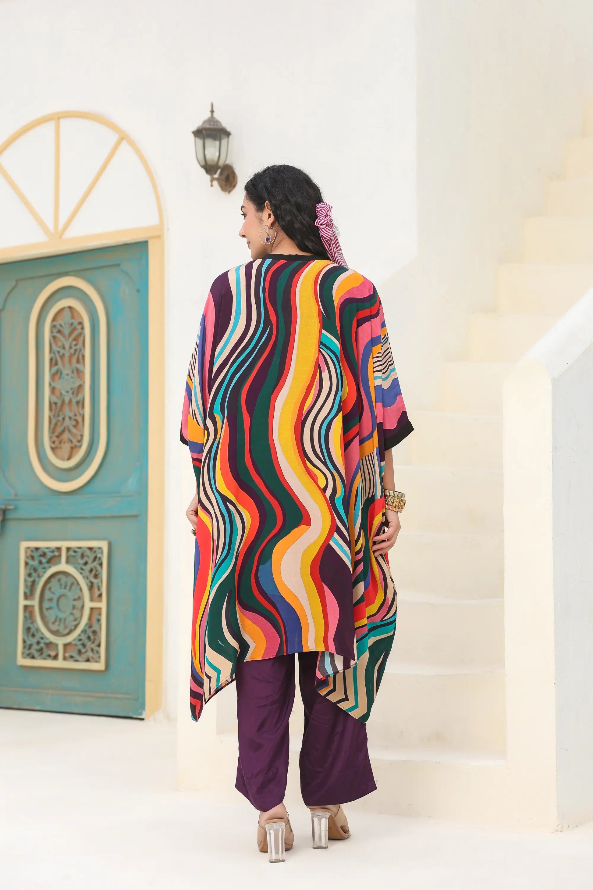 Abstract Print Kaftan With Sequins Embellish Neck