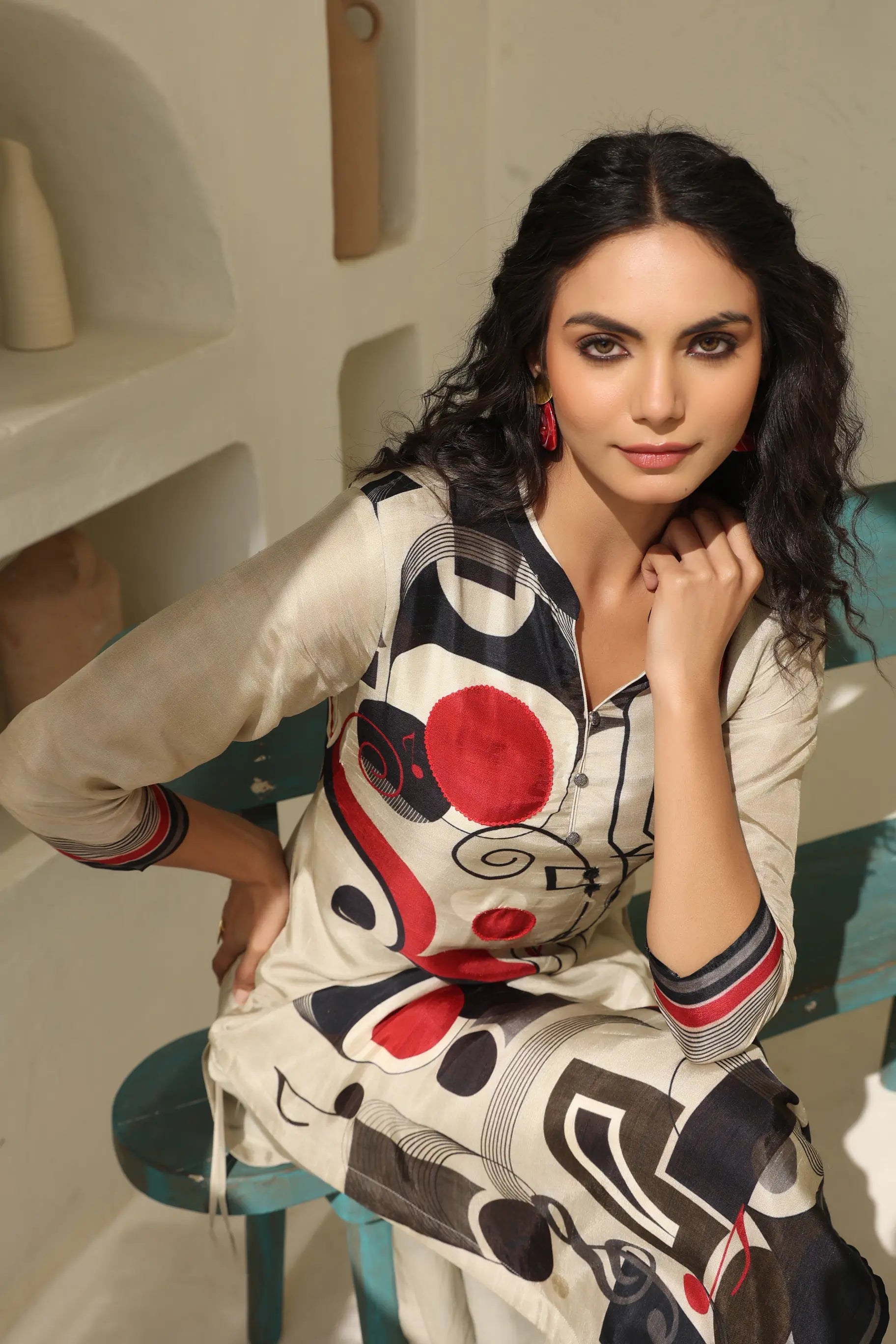 Abstract Print Straight Kurti with Pant