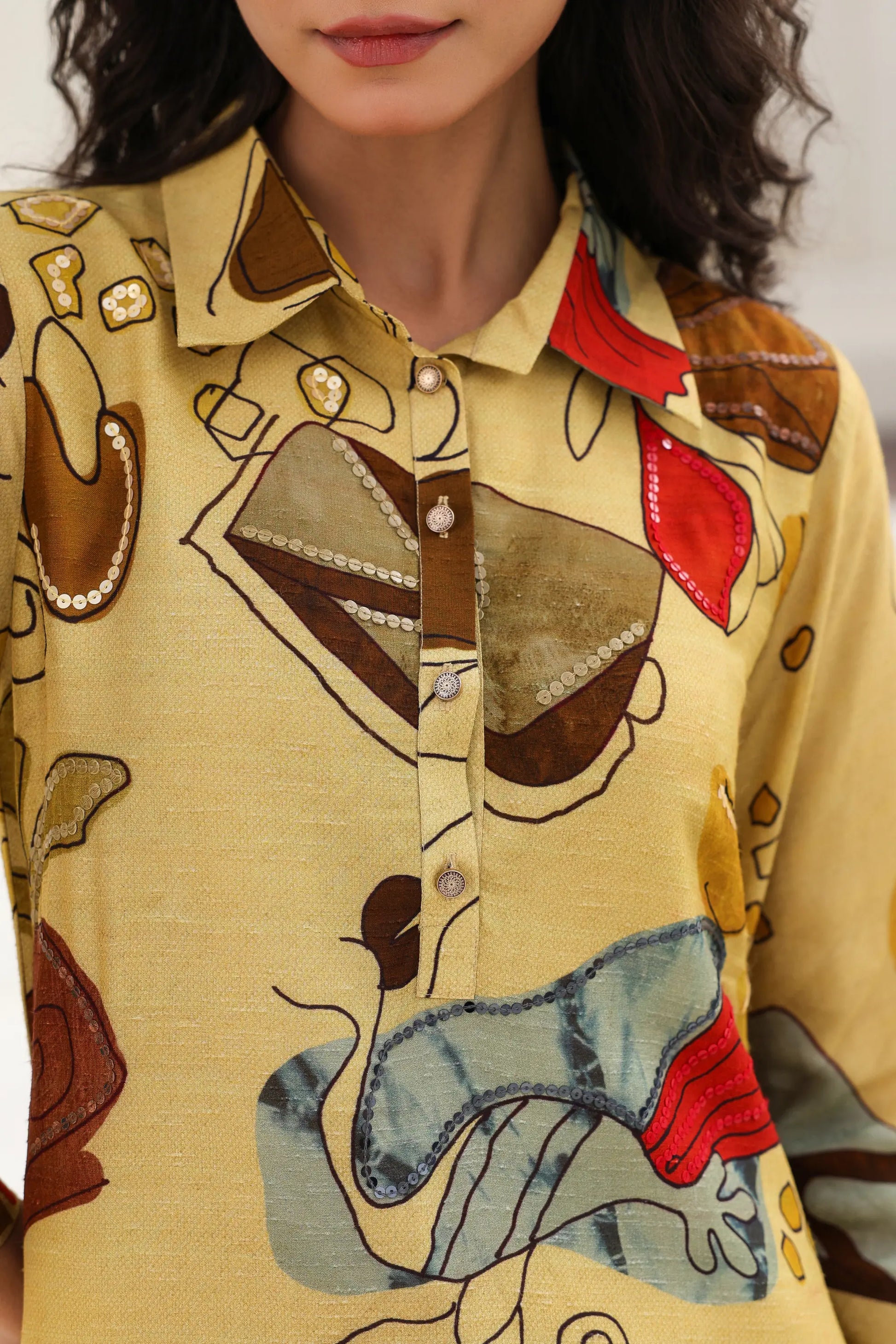 Material:– Kurti- Spanish Silk, Pant- Malai Cotton