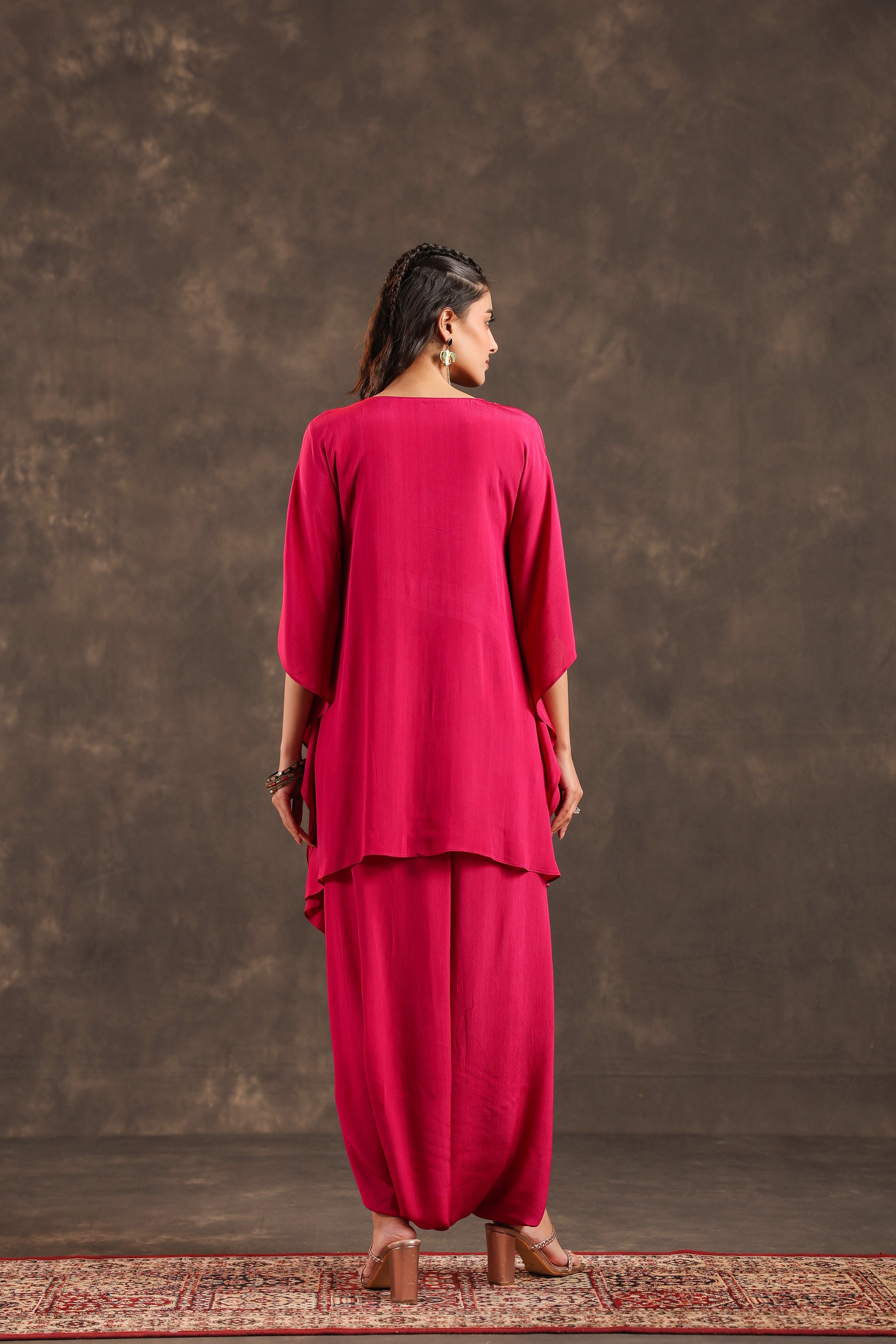 Embellished Kurti + Dhoti Pant Rani Pink