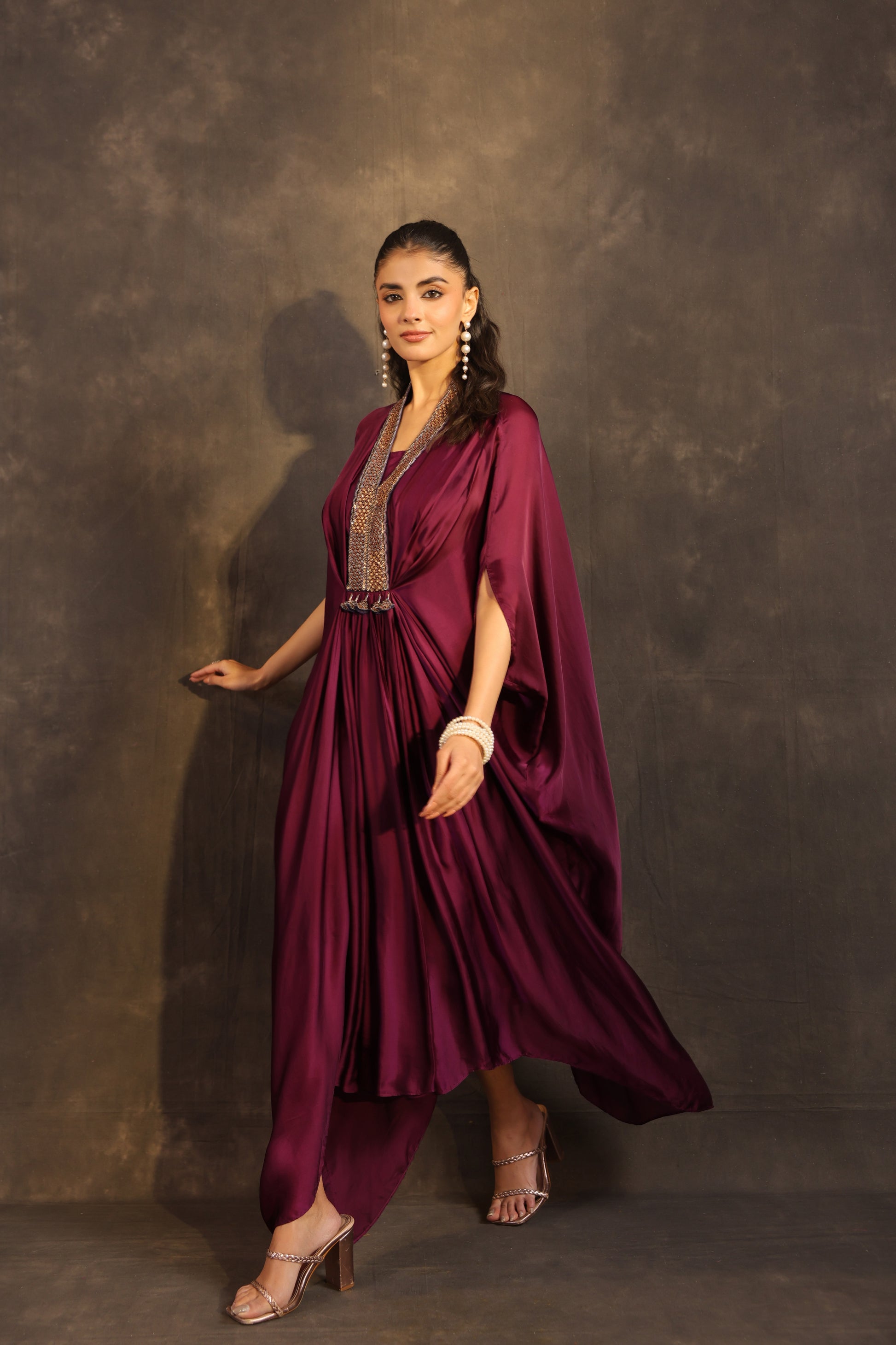 Flayered Kaftan Dress Burgundy