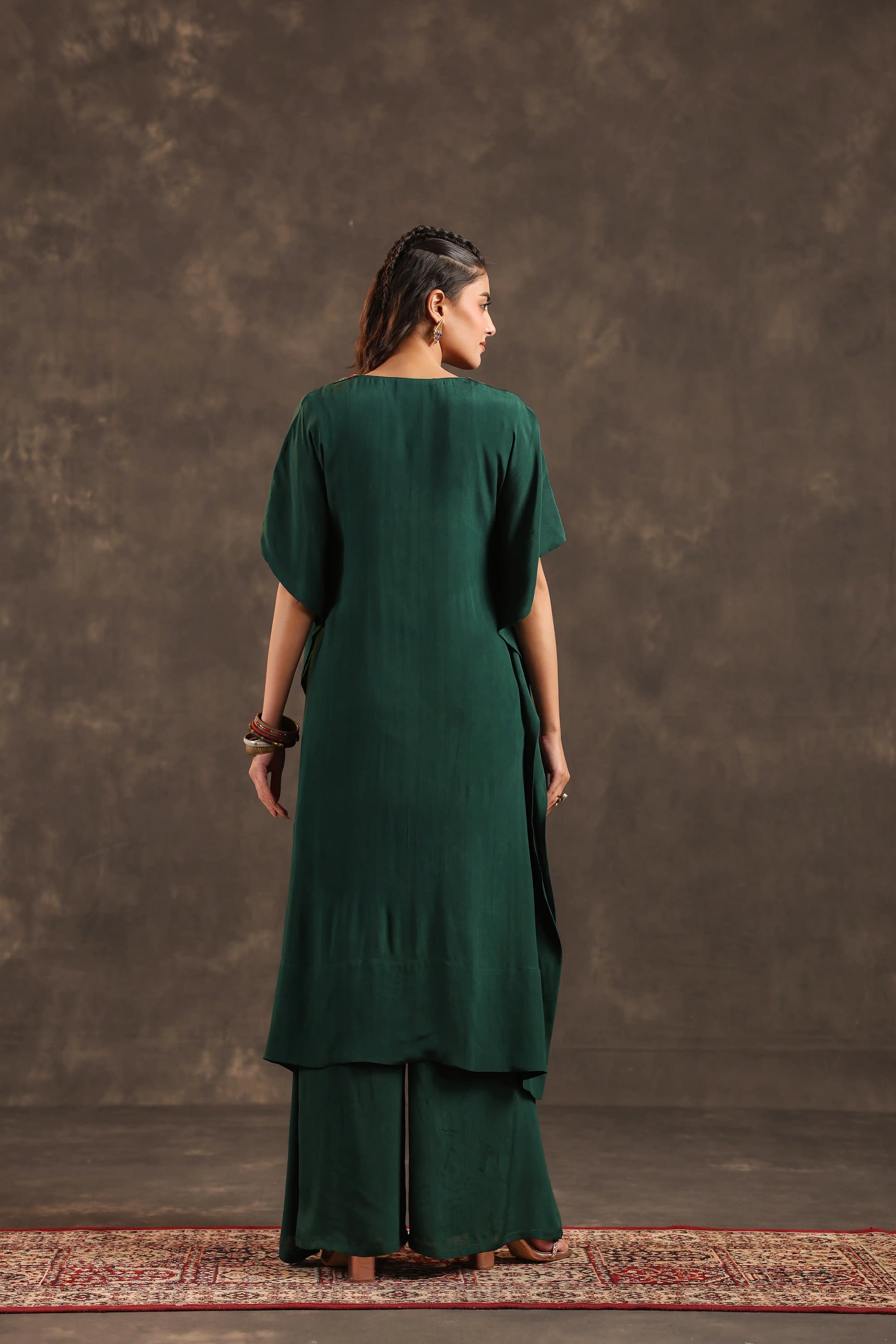 Heavy Embellished Long Top with Flayered Pant Green